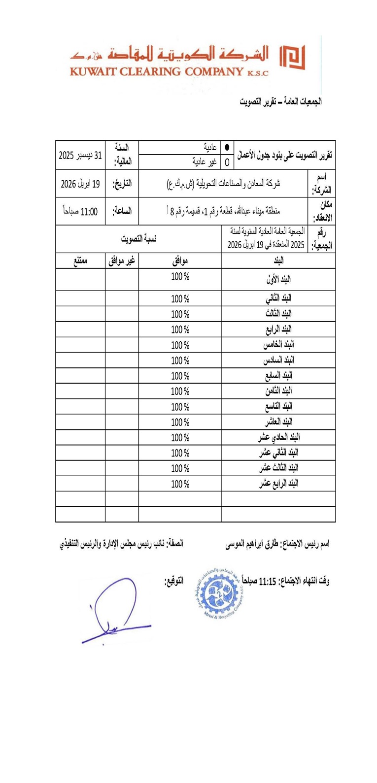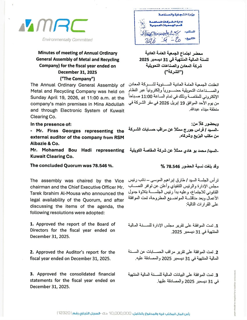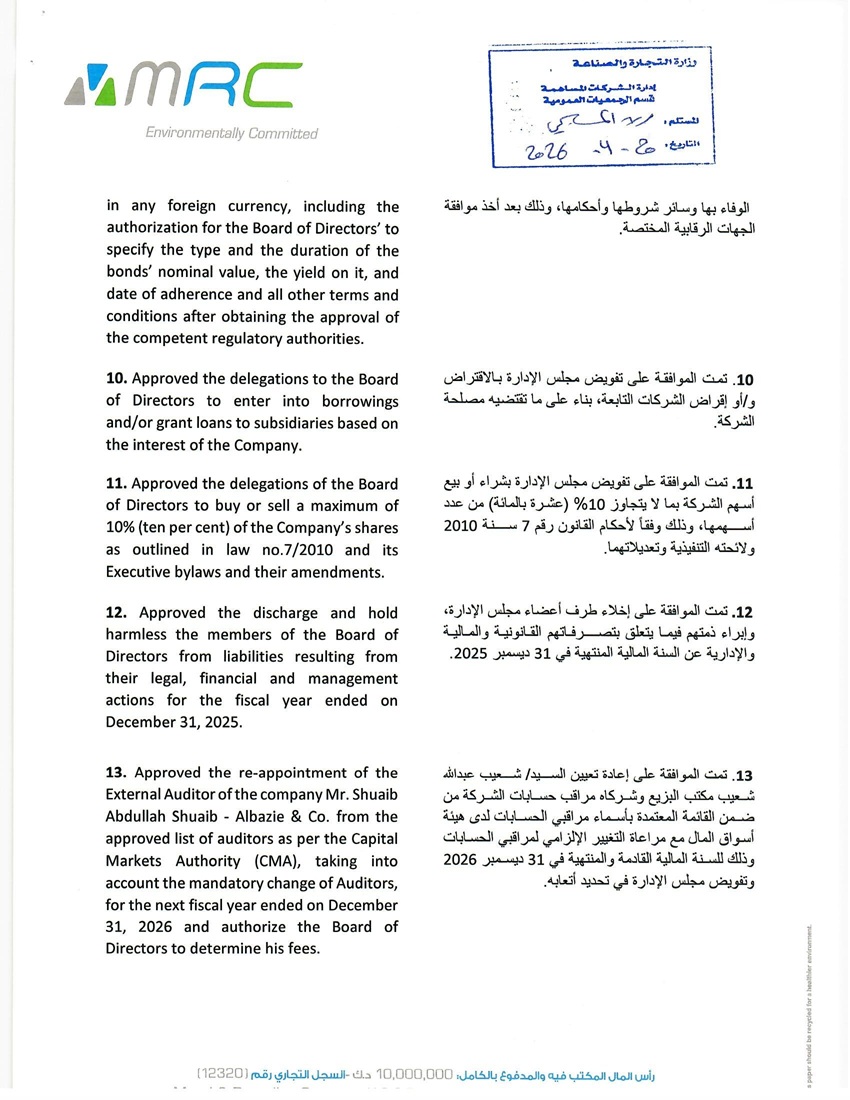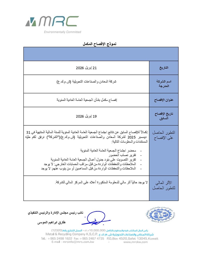 إفصاح مكمل الجمعية العامة العادية السنوية