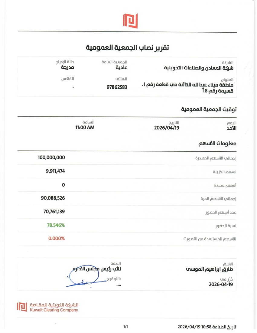عن شركة المعادن والصناعات التحويلية