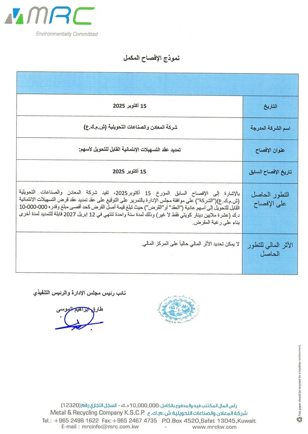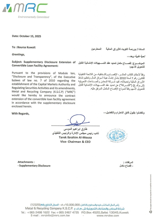 إفصاح مكمل تمديد عقد التسهيلات الإئتمانية