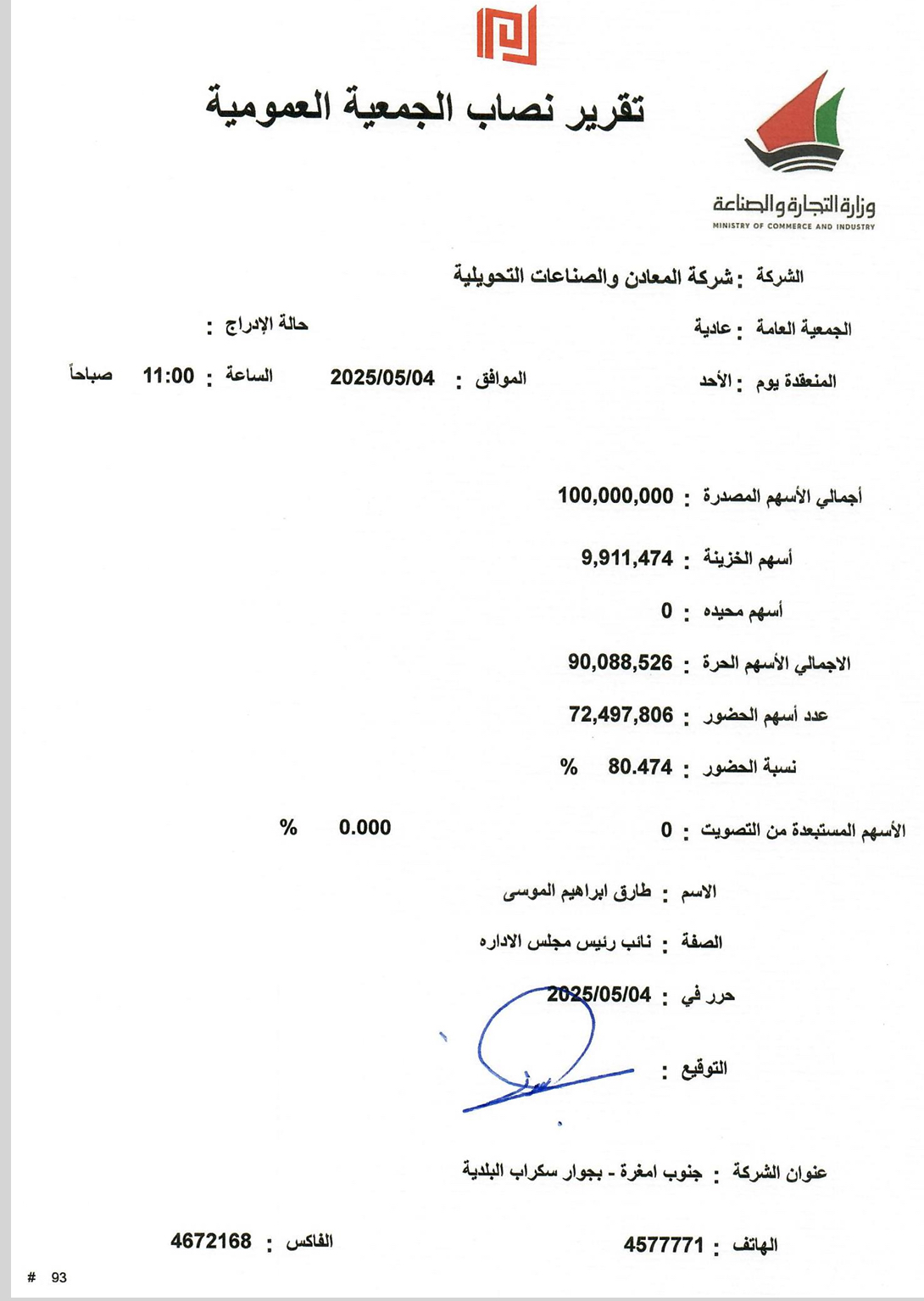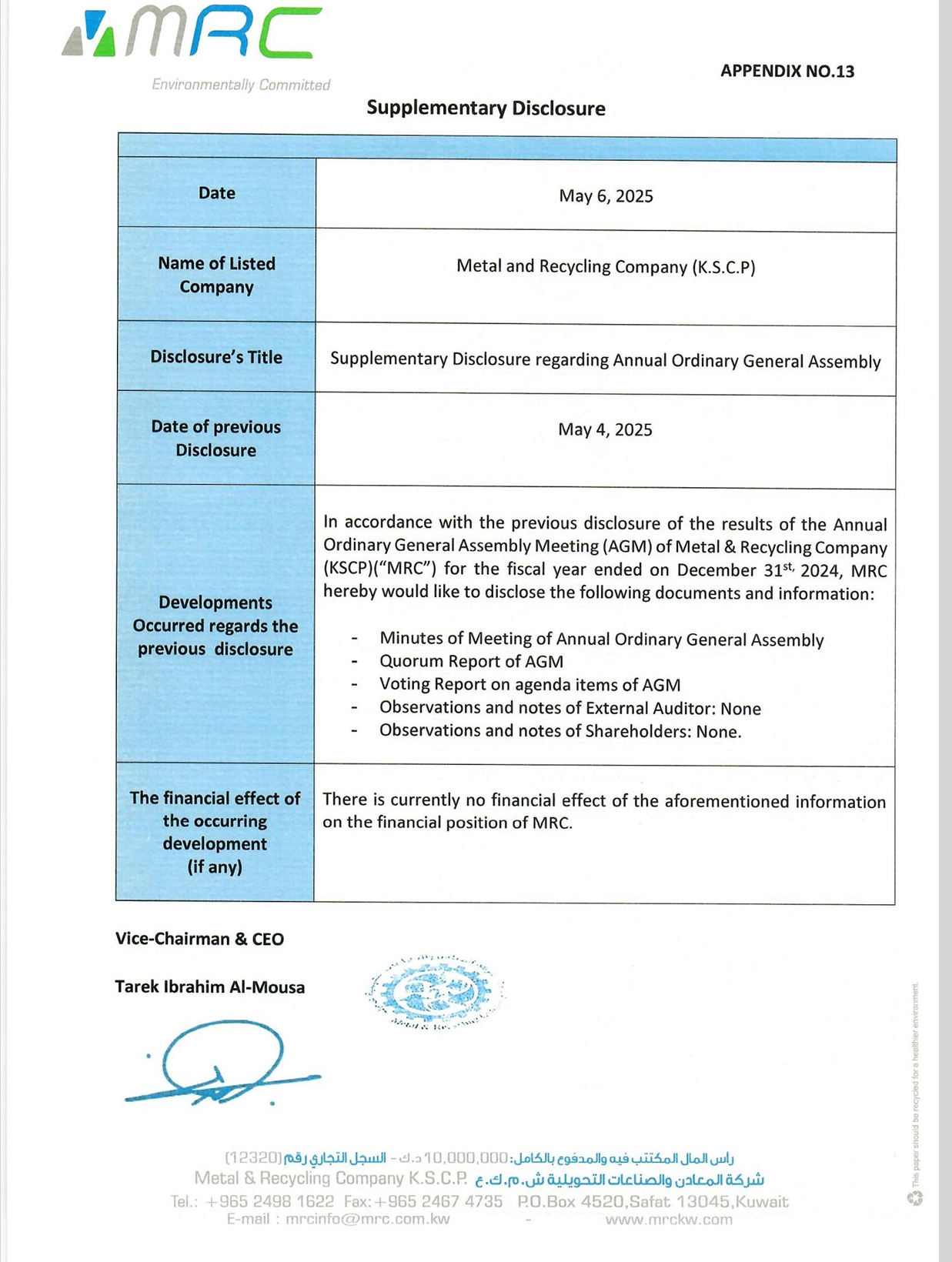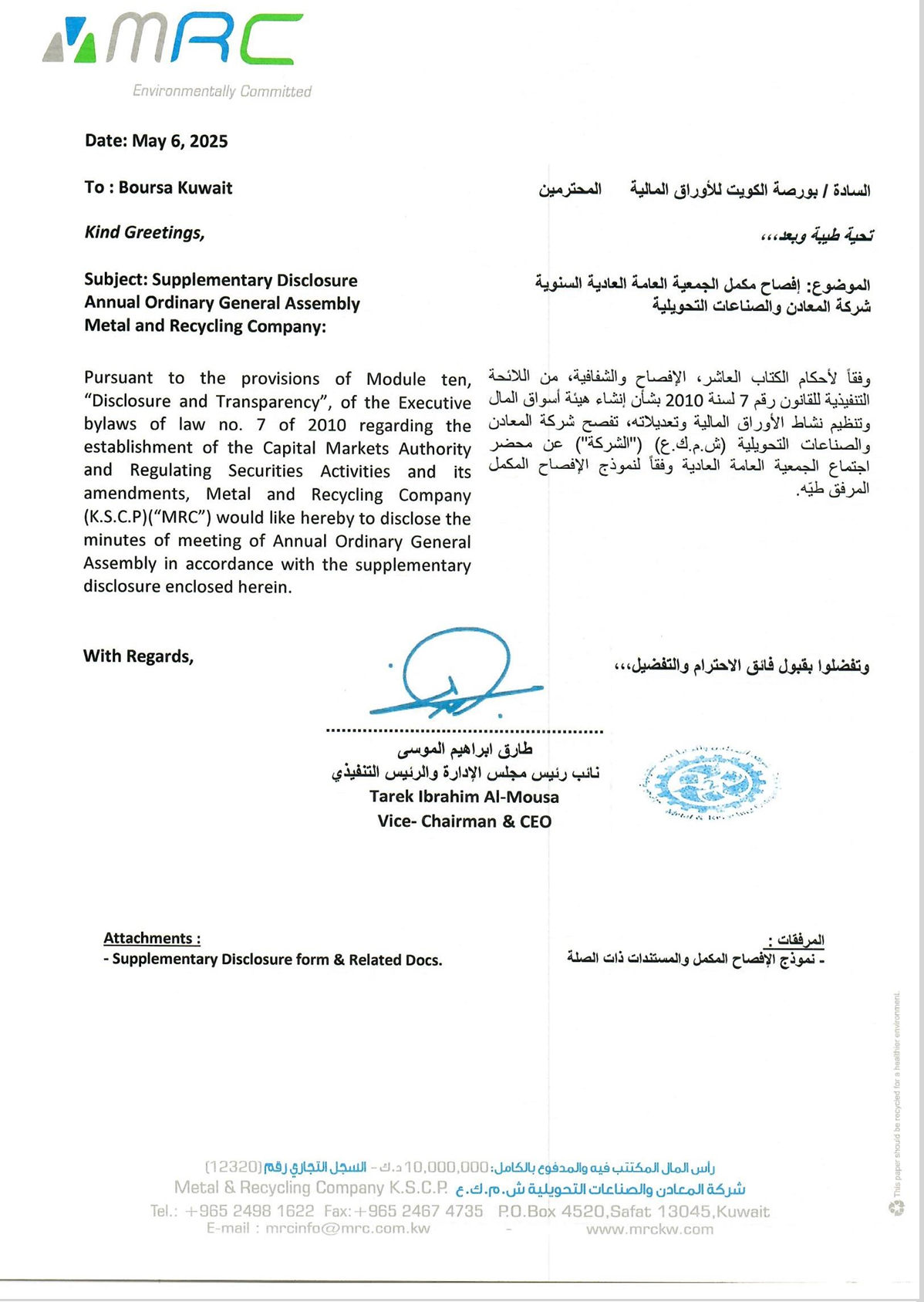 إفصاح مكمل الجمعية العامة العادية السنوية