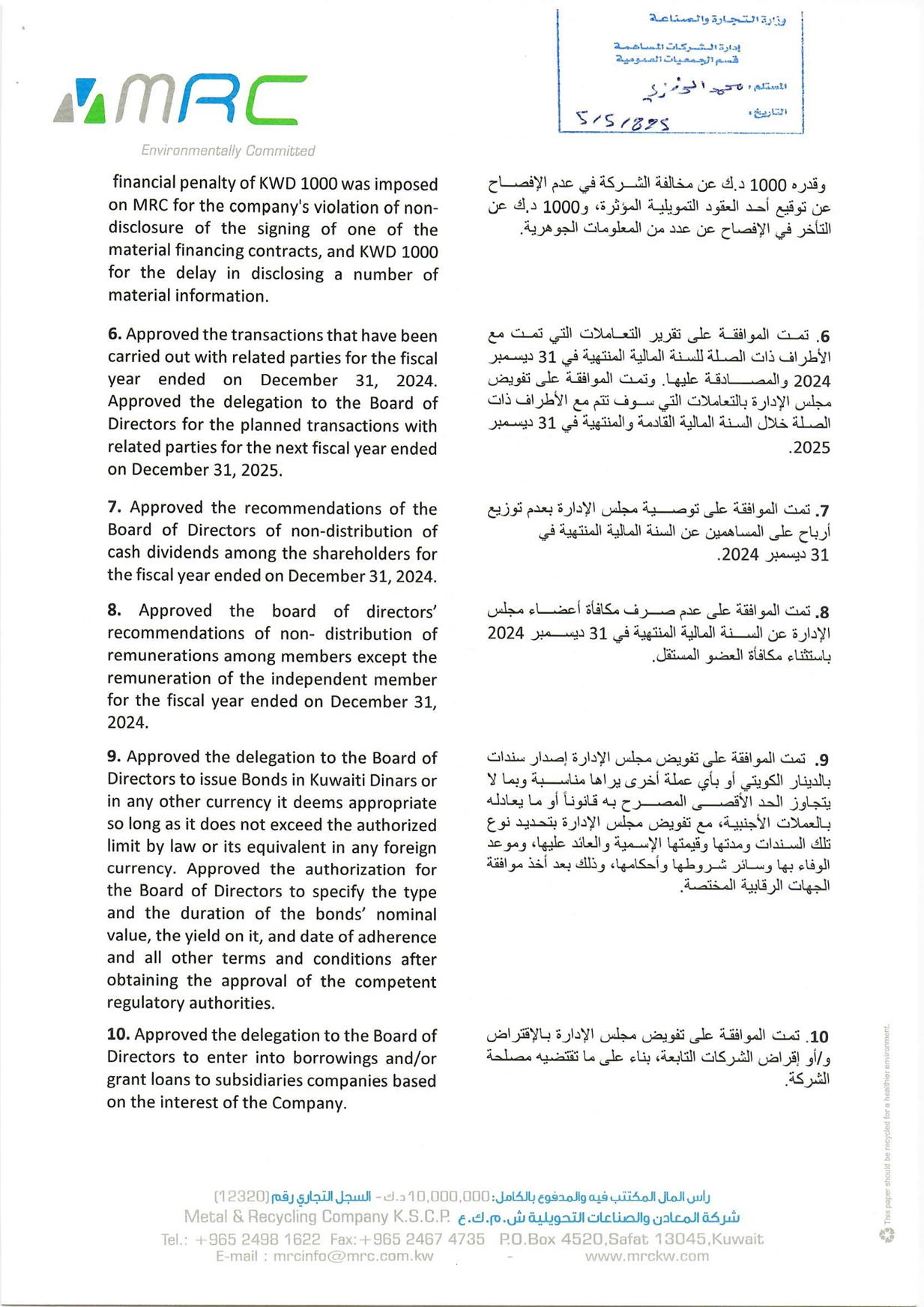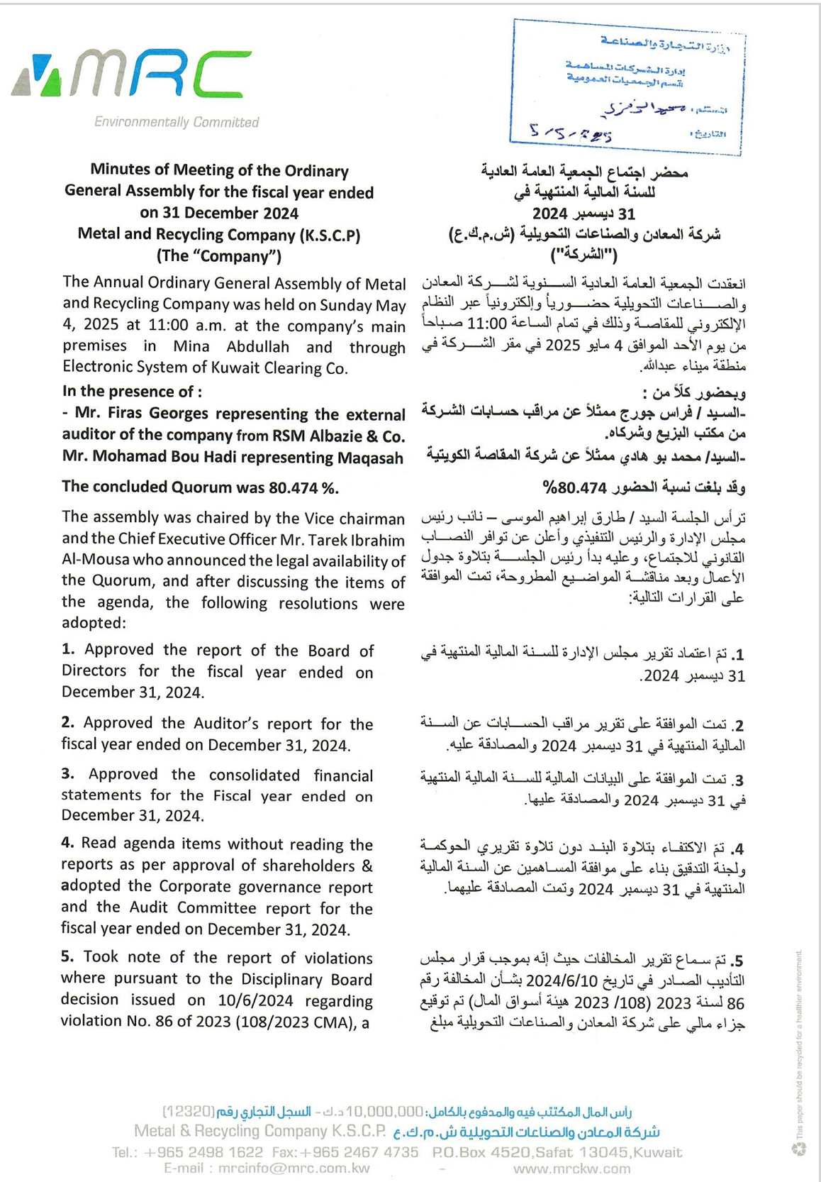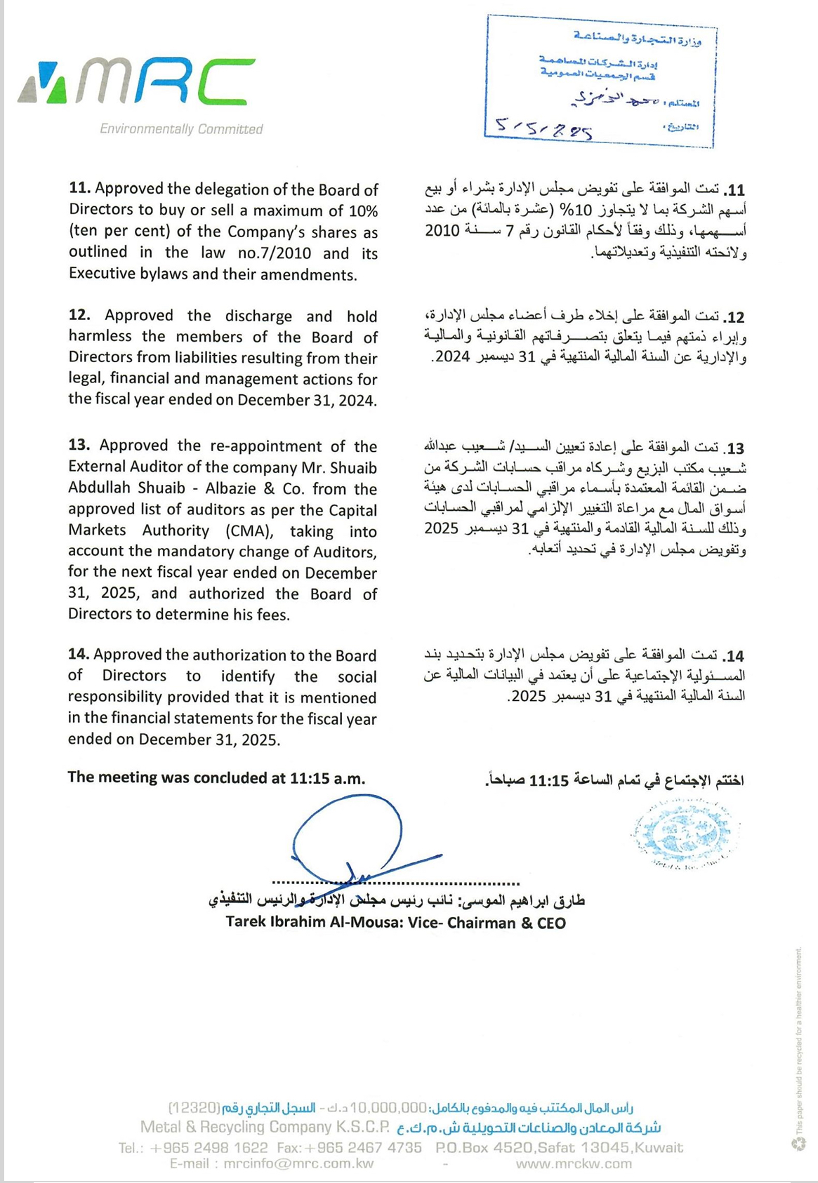 إفصاح مكمل الجمعية العامة العادية السنوية