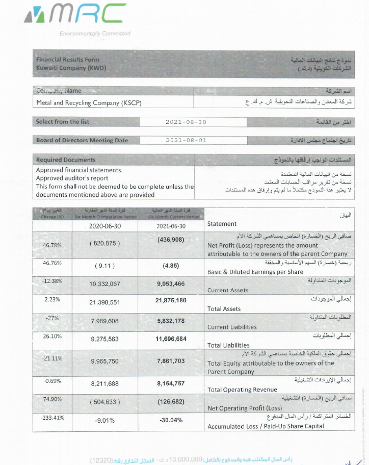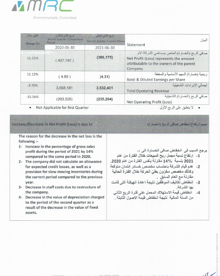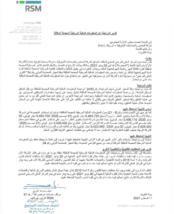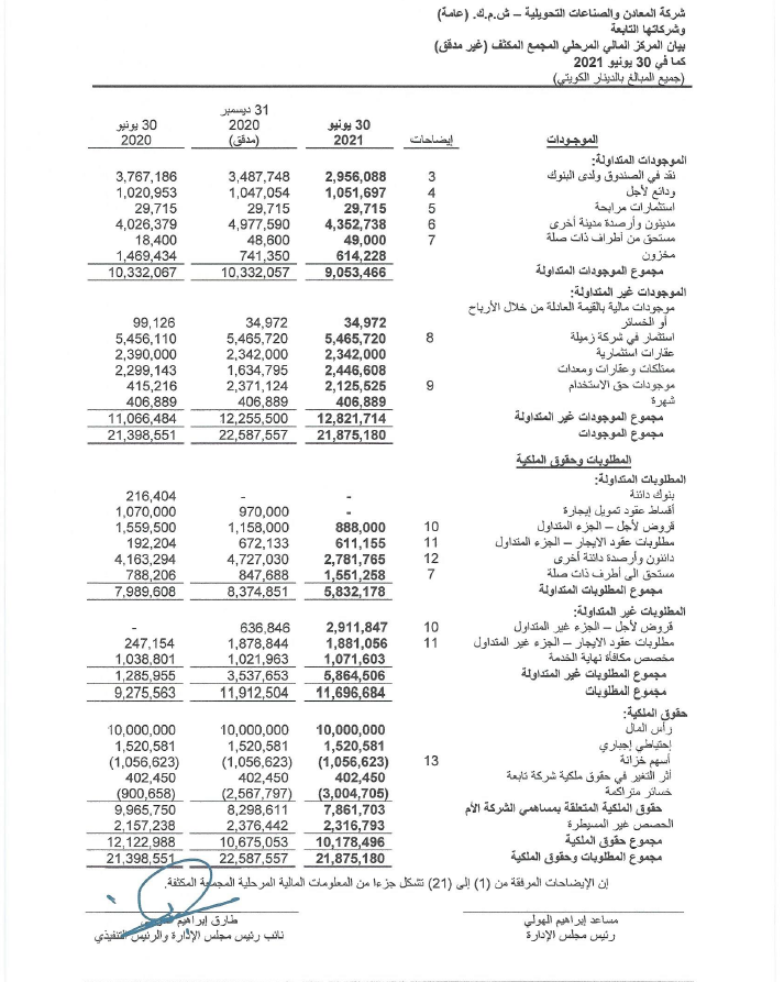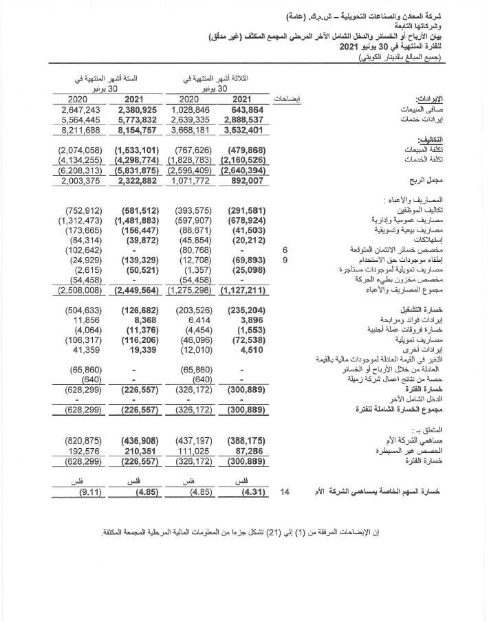 النتائج المالية للفترة المنتهية 30 يونيو 2021