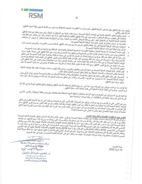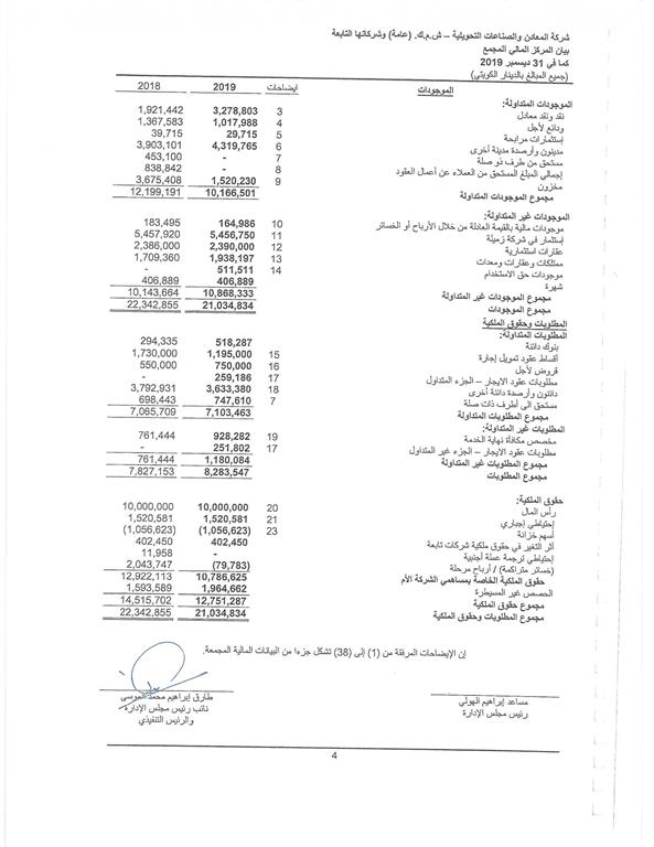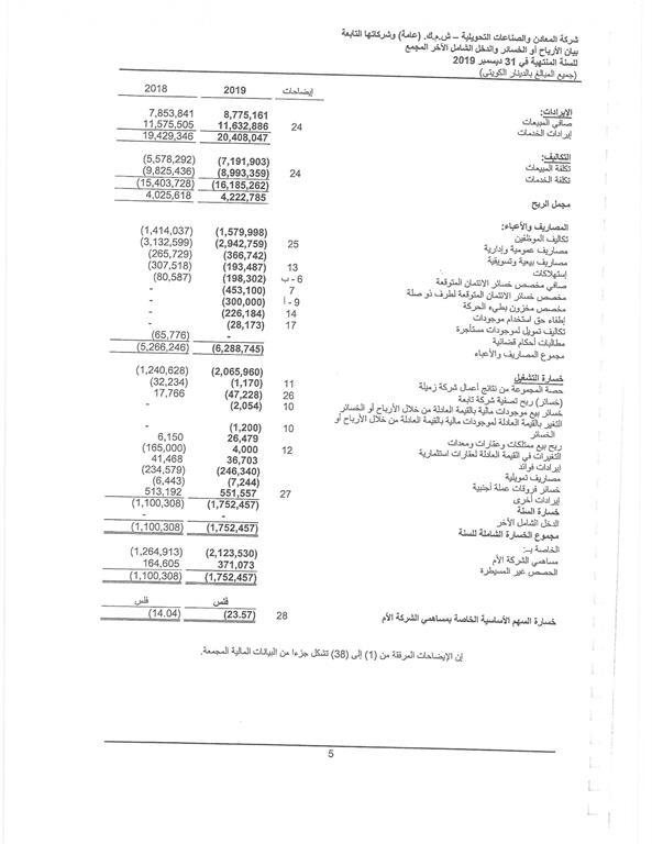 النتائج المالية للسنة المنتهية في 31 ديسمبر2019