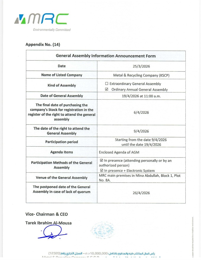 AGM will convene on 19 April 2026